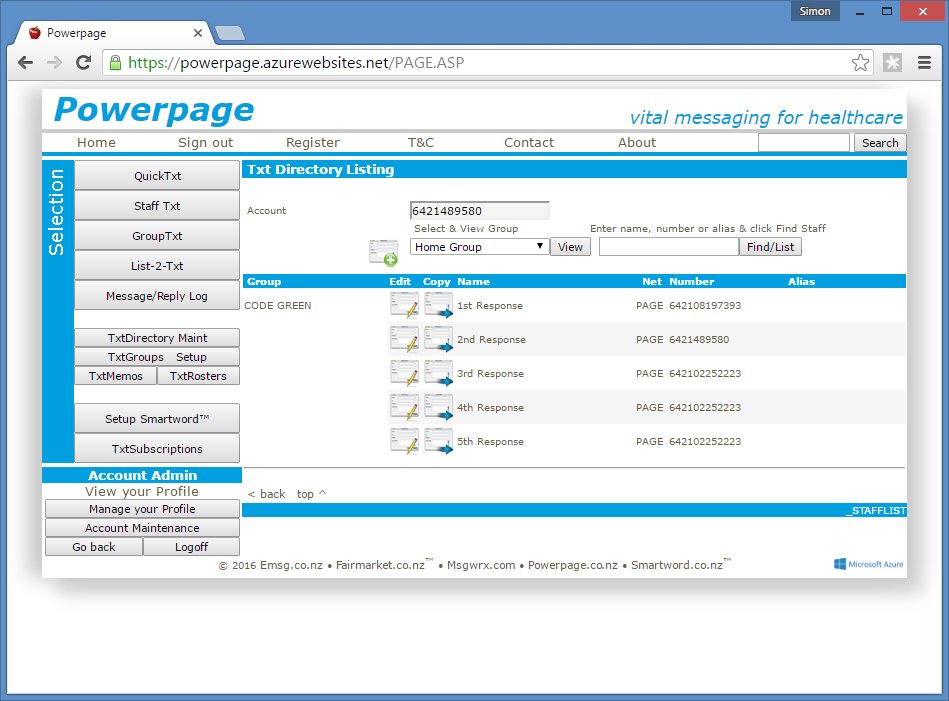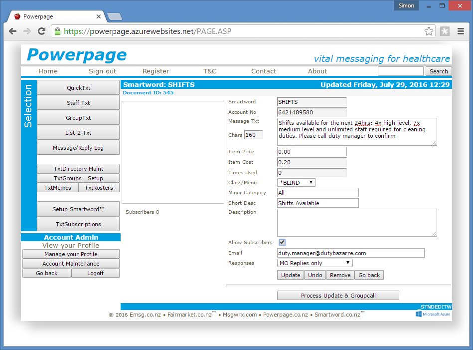 Message sent Ok, reply received (click for messages to this number)