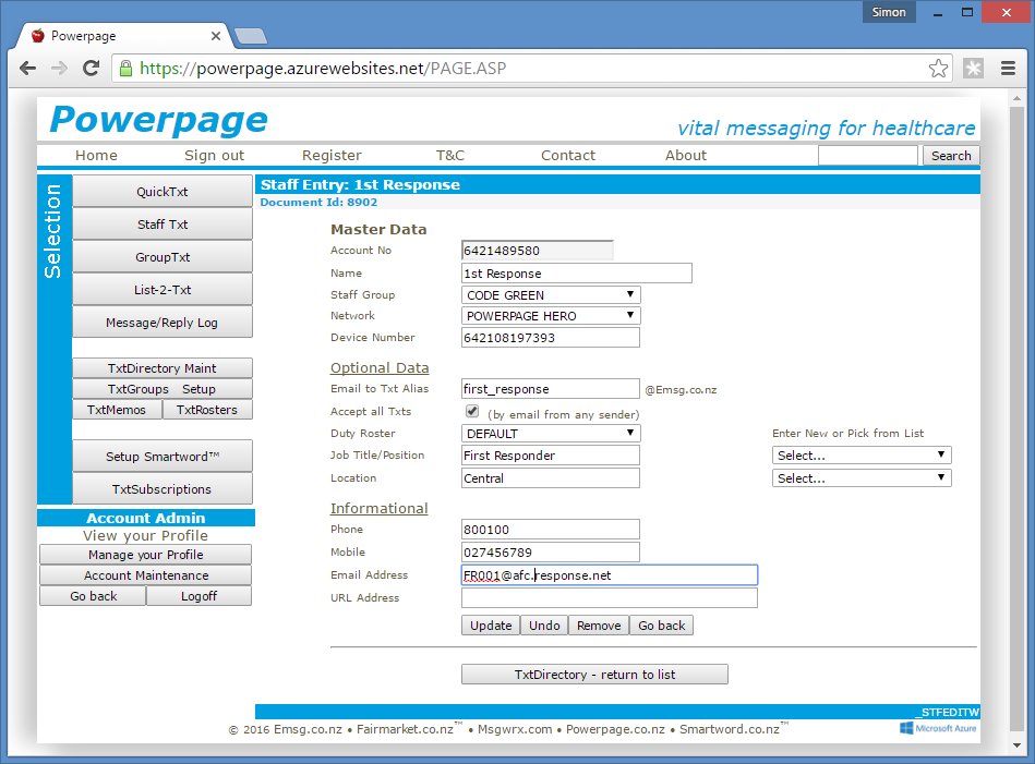 Full text of message is shown with recipient network/number and staff name, if known,